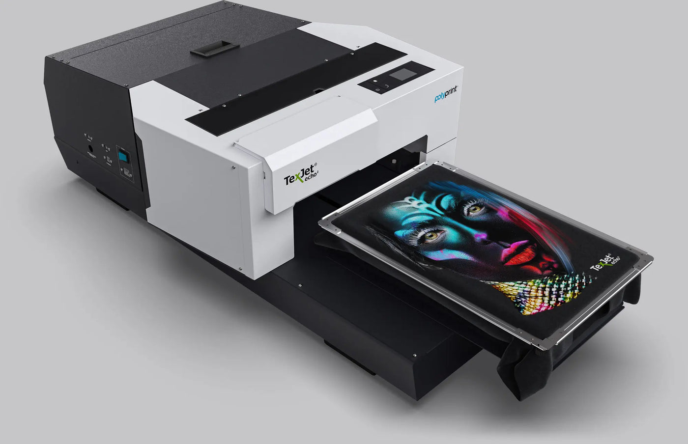 The TexJet Echo 2 is the complete solution for direct printing on T-shirts and clothing in photo quality on many light or dark textiles.