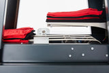 All machines operate either stand-alone or in combination. The functional division of the complete station into 3 units allows the optimal choice of machines for the needs of each producer. The STP-1000 automatic folding machine has a production capacity of 5500 pieces in 8 hours (this measurement was carried out in our premises), and is obtained thanks to 5 basic programs. The speed of the employee plays a key role in the productivity of the machine, as well as the program selected and the type of garment.