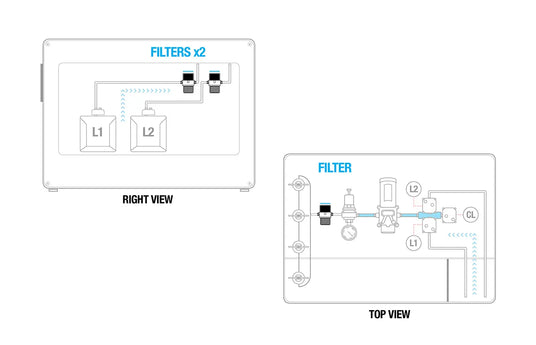 Three washable filters protect the system from sediment blockage, and the replaceable 5-litre reservoirs remain sealed, reducing the risk of dust or debris entering the system.