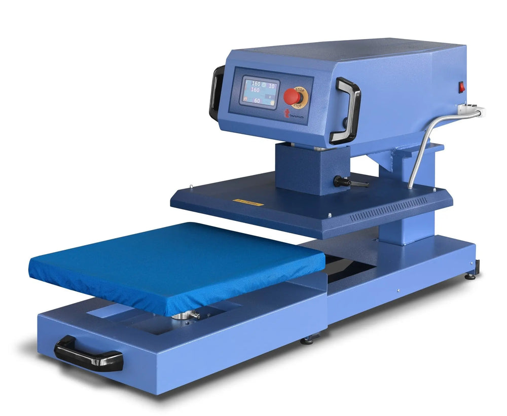 The REV 2C / 2CA electric heat press machine has an opening with drawer.
