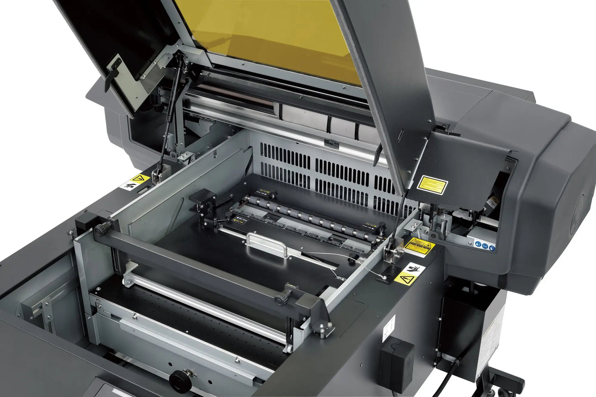 The compact XPJ-661UF printer is especially suitable for small businesses, home workers or small retail businesses. Intended for producing custom single prints or short runs, the XpertJet 661UF UV LED A2 + flatbed inkjet printer can be configured in CMYK or CMYK + White + Varnish mode. P >
