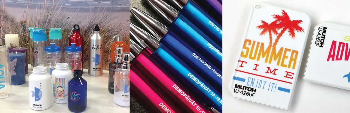 This printer is ideal for printing cell phone cases, gifts, photo products, various promotional items such as pens and USB keys, souvenirs, awards, small signs, decorative tiles, or even the production of small series or packaging prototypes, etc.