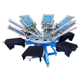 Le TEXWORK DOUBLE est un carrousel manuel d'impression textile, équipé d'un pont double couleur, avec la capacité d'installer plusieurs palettes spéciales pour parapluies, manches, vestes, casquettes et autres... Il peut imprimer jusqu'à 10 couleurs maximum pour 10 postes.