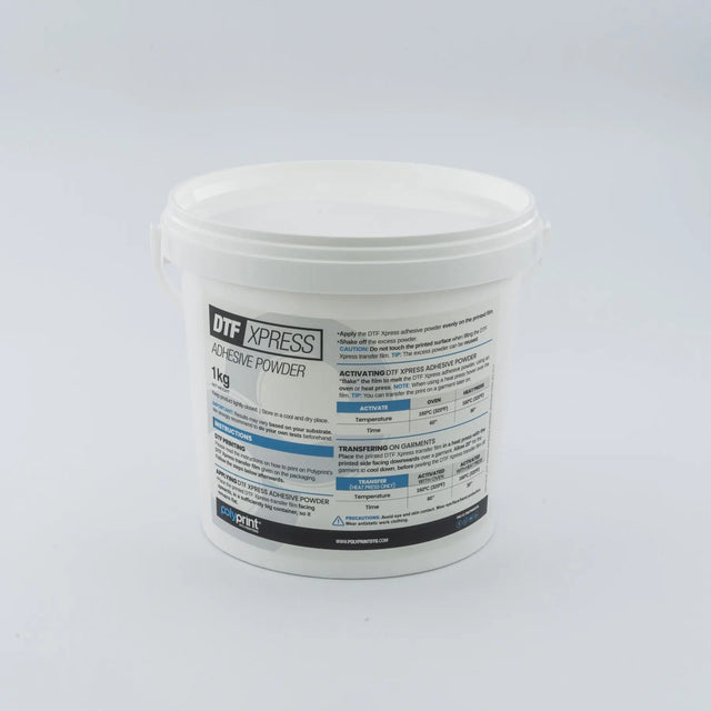 Utilisez DTF Xpress - Poudre adhésive pour appliquer et coller correctement vos impressions sur le vêtement de votre choix. Le produit comprend 1 kg de poudre adhésive.
