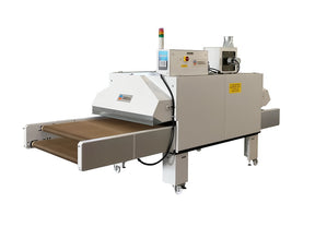 - La configuration du convoyeur à double bande permet de travailler simultanément avec deux temps de séchage indépendants. Chaque bande a son propre contrôle de vitesse qui peut être ajusté en fonction des besoins de l'encre ou du vêtement.